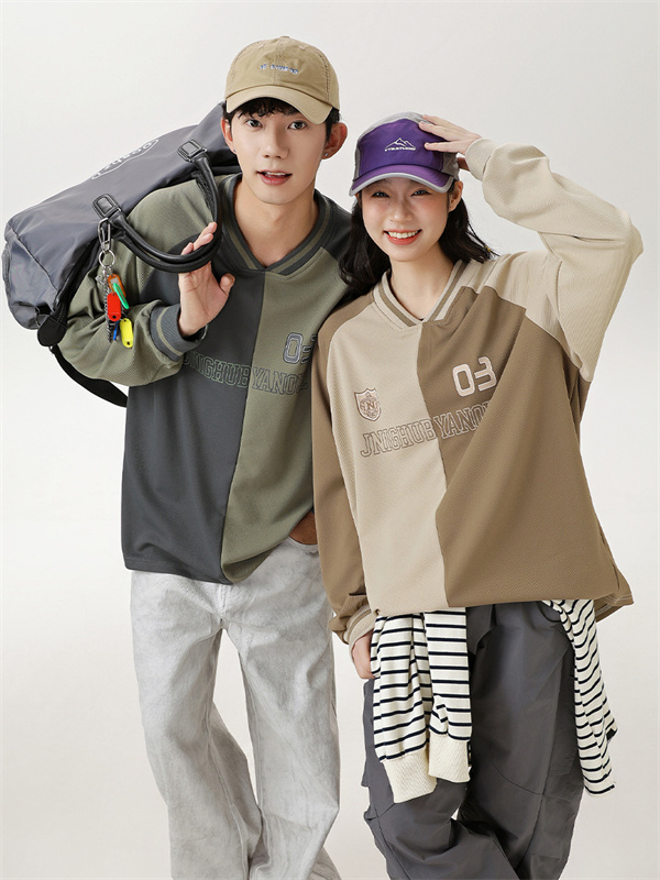 春新作配色切替パーカー男女兼用ペアルック