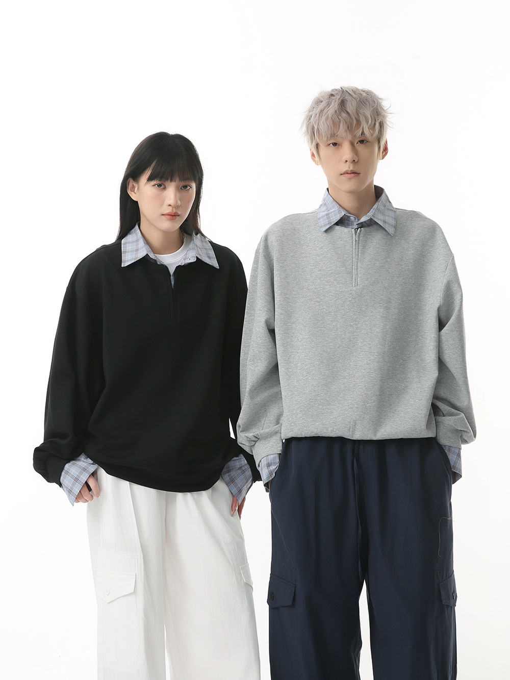 一枚でおしゃれに決まる偽重ね着デザインで、カップルや友人とのペアルックにもぴったり。
