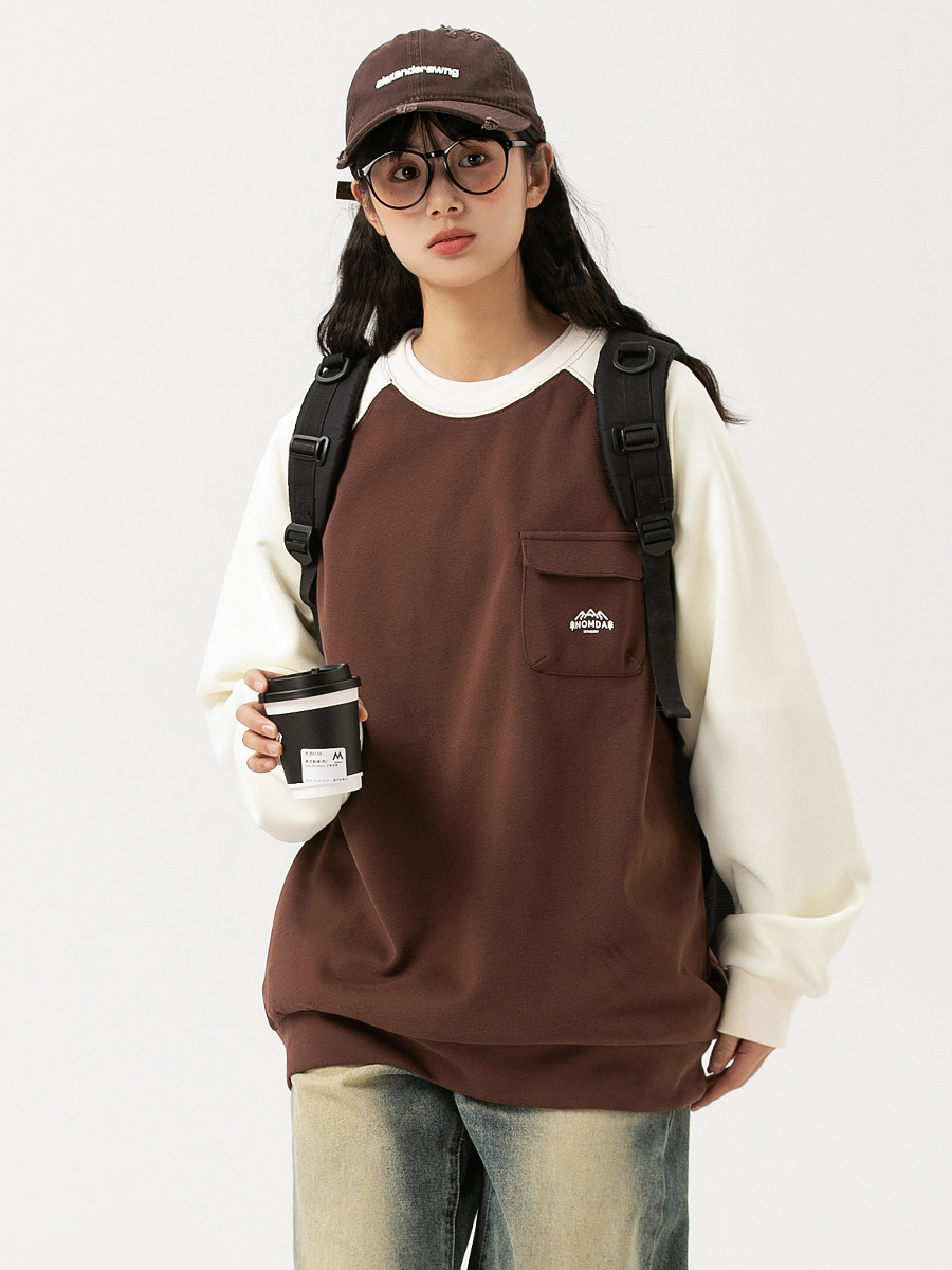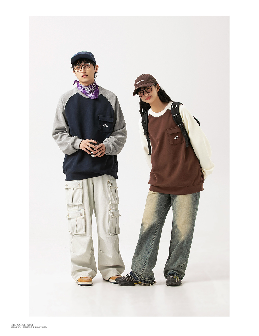 男女兼用 配色切替パーカー ペアルック 長袖トップス ポケット付き