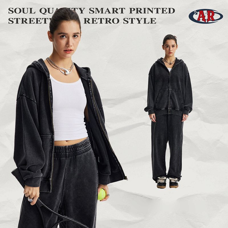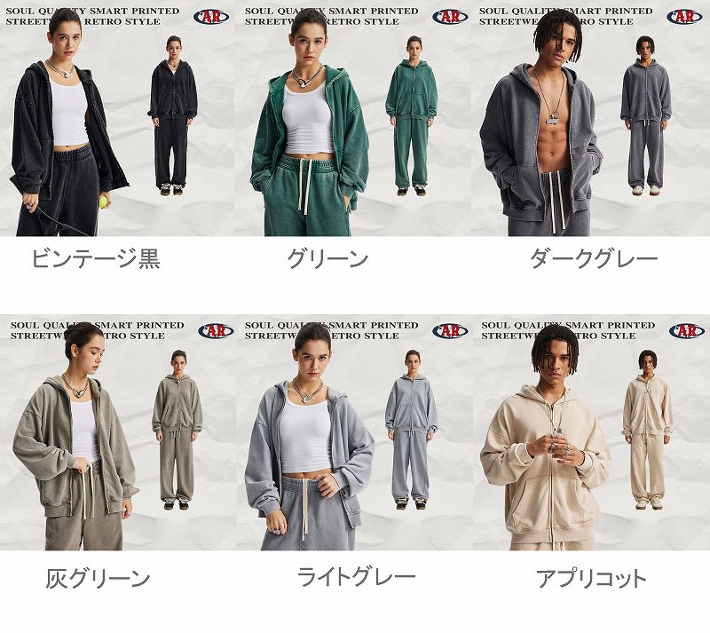 ペアルック 裏起毛パーカー上下セット男女兼用ビンテージ風全6色